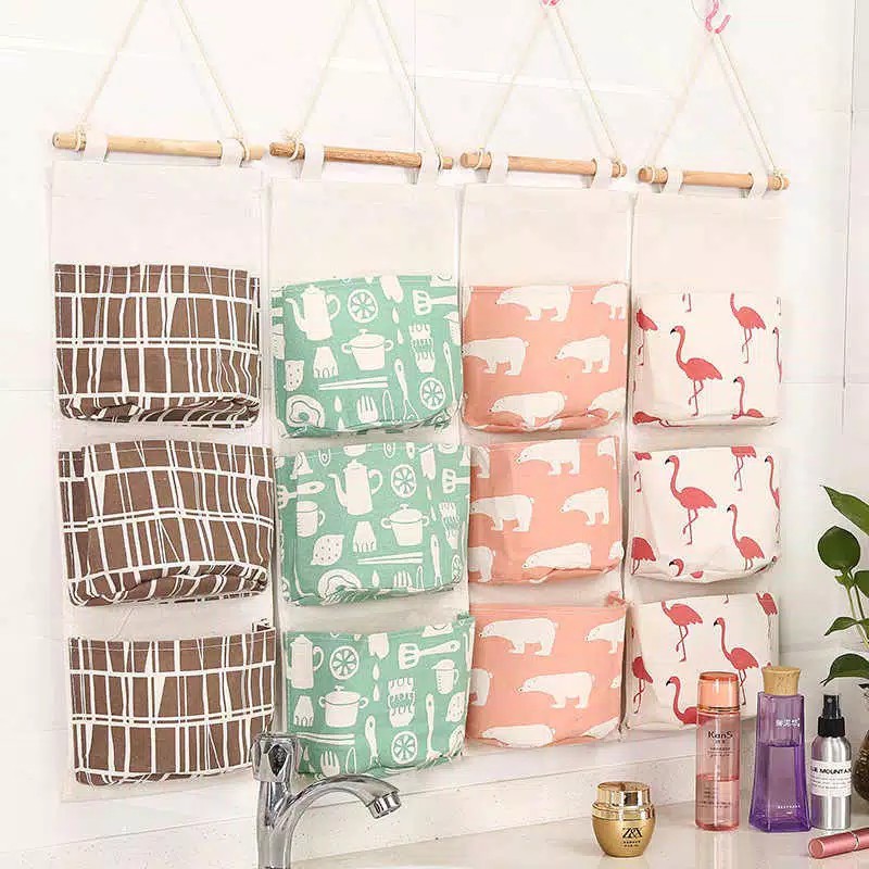 Pouch gantung berfungsi untuk tempat aksesoris, pernak pernik rumah dan dapur seperti kosmetik, alat rias, ikat rambut, remote, buku resep, pulpen dan sejenisnya.Dilengkapi tali dan kayu, bisa digantung di tembok ruang tamu, kamar tidur atau di belakang pintu.Terdiri dari 3 susun, tiap susun ruang dalamnya cukup luas, bisa muat banyak pernak pernik. Terbuat dari bahan cotton linen, bahan tebal dan anti air.Dengan pouch gantung, pernak pernik kecil jadi tersimpan rapi dan mudah dicari saat dibutuhkan. Isi rumah juga jadi rapi, tidak berserakan dengan aneka pernak pernik.Size : 20 x 58 cm NB : - MODEL DIKIRIMKAN RENDOM KUALITAS TERBAIK\- SETUJU = MEMBELI (NO COMPLAIN MODEL DAN WARNA)- Harga termurah SALE#Pounchgantung #rakgantung #7sekat #COD #Gratiso