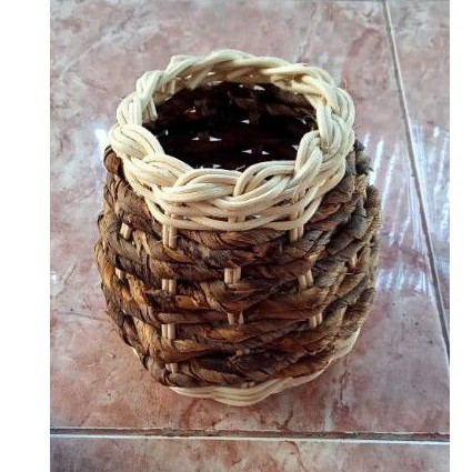 storage rounded bahan rotan & banana/debog.bisa untuk vas bunga, ataupun storage lainnya.warna naturaldiameter bawah 12 diameter atas 8 cm ting