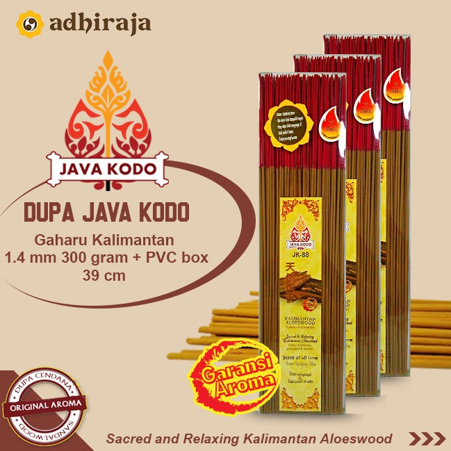 Dupa Java kodo mempunyai keunggulan aroma sepanjang masa, abu dupa tidak menyakiti tangan, asap dupa tidak menyengat dan tidak pedih di mata, tanpa pewangi buatanAroma: GaharuLama pembakaran: 75 menitIsi: 300 gramPanjang: 39cm-Ongkos Kirim ditanggung oleh Pelanggan-Barang yang dipesan sudah kami cek terlebih dahulu sebelum dikirimkan-Kami tidak bertanggung jawab apabila terjadi kerusakaan barang yang terjadi saat pengiriman-Semua packingan sudah mendapatkan Bubble Wrap gratis“Barang pecah/rusak karena pengiriman bukan mejadi tanggung jawab kami karena sebelum dikirim sudah kami cek terlebih dahulu""Disarankan tanya stock terlebih dahulu sebelum memesan barang
