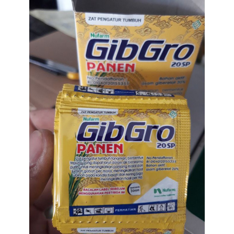 Gibgro panen adalah Zat Pengatur Tumbuh pada tanaman, Yang berbentuk tepung dapat larut dalam air berwarna putih,gibgro panen cocok untuk meningkatkan hasil panen pada usia 60-65 dan dapat digunakan untuk berbagai tanaman yang berbahan aktif : Asam Giberelat 20% .Dapat diaplikan pada tanaman kususnya padi dan dapat untuk tanaman lainya polo wijo bunga buah dll.Keunggulan Gribgro panen seperi ;. Meningkatkan panjang malai. Meningkatkan jumlah gabah permalai. Meningkat jumlah buah pertangkai. Meningkatkan hasil ubinan pada kondisi basah. Meningkatkan hasil ubinan pada konisi kering juga hasil per Ha.. Menambah bobot per uninan atau isi padi Berat 1g dikemas dlm berat bersih 5g saat pengiriman Terimakasih sudah membaca selamat berbelanja #gibgro#panen#zpt#perangsang#buah#padi#bulai#ubinan#tangkai