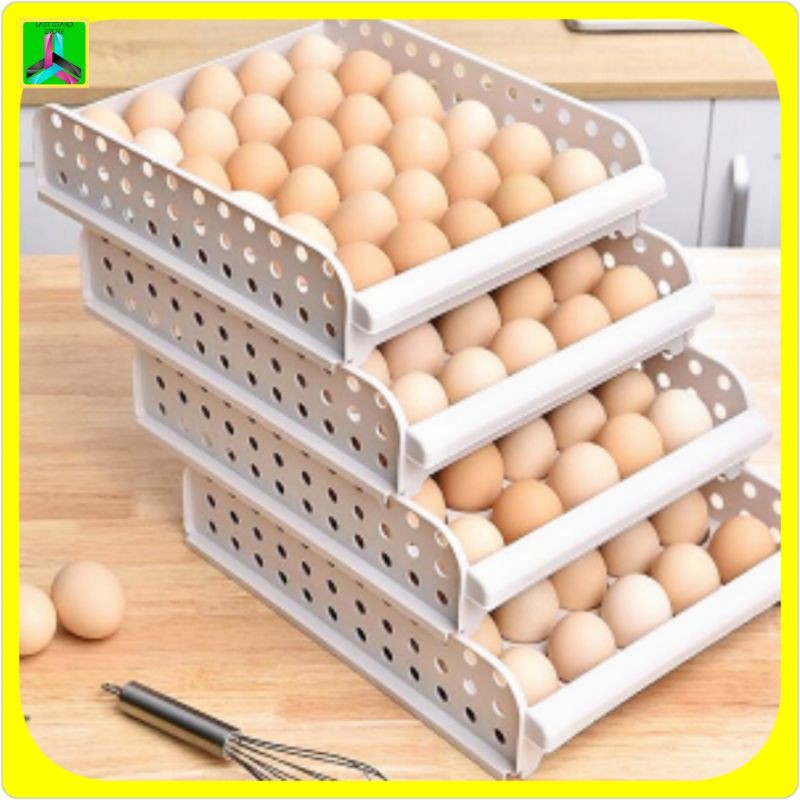 Rak Telur Plastik Box Telur 2 Tingkat berbahan plastik tebal yang kokoh dan ringan, tahan lama. Dengan desain lubang disetiap sisi sehingga sirkulasi udara tetap terjaga, anti-lembap sehingga telur tidak cepat rusak. Model yang cantik sehingga penyimpanan telur rapih, teratur, mudah dijangkau.Ukuran Produk :33*26.5*14.