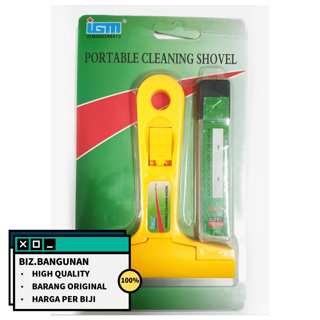 Pisau Pembersih Kaca IGMFungsi:Untuk membersihkan kaca (kaca etalase, kaca display, pintu kaca), kerak pada lantai, dllAda pegangan sehingga membersihkan kaca/lantai jadi lebih mudaHarga sudah termasuk refill pisau sebanyak 10pcsUkuran pisau: 18mmx102mmCatatan:- Jika ingin ambil grosir mohon chat admin terlebih dahulu karena stok bisa habis sewaktu-waktu- Jika ingin barang yang tidak ada di etalase bisa chat