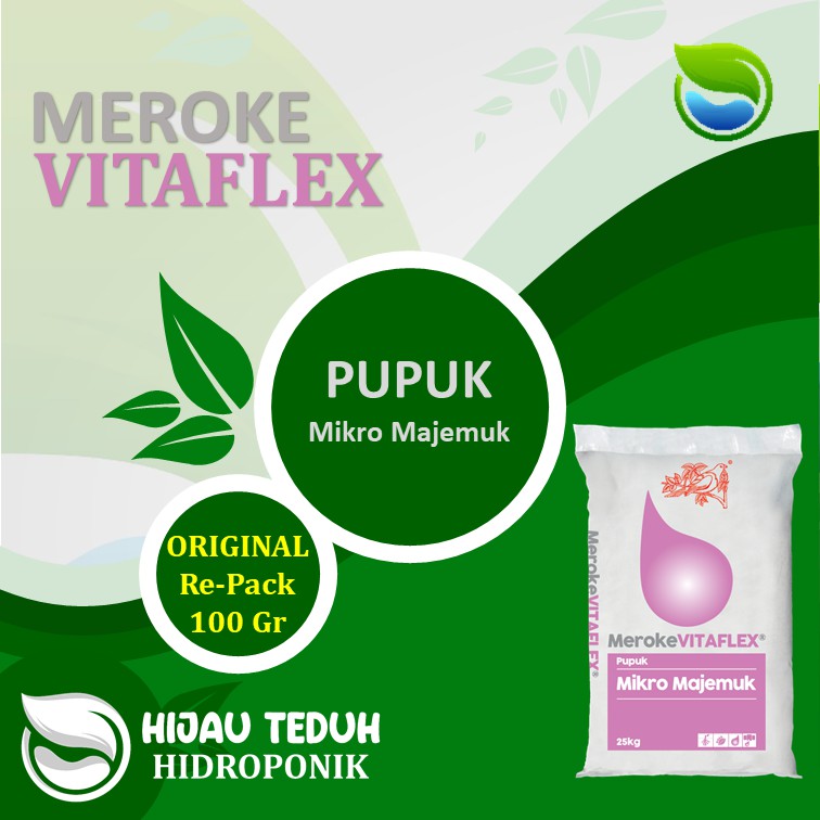 ORIGINAL MEROKETERSEDIA KEMASAN PABRIK 500Gr (chat tuk kemasan pabrik )Dan KEMASAN RE PACK 100grReady Stock ... Langsung ORDER yahHari Kerja Langsung Dikirim Hari Yang SamaKami Terpercaya Dalam Pelayanan.PRODUKMEROKEVITAFLEXKATEGORI : WATERSOLUBLE GRADEMerokeVITAFLEXMerokeVITAFLEX mengandung Boron (B) dan Tembaga (Cu). B diperlukan untuk pembentukan bunga, germinasi serbuk sari, pembentukan buah, pengaturan air dan transportnya di dalam tanaman. Sementara Cu untuk fotosintesis, pembentukan bunga dan biji, sintesis lignin untuk kekuatan tunas dan batang.Manfaat:Tanaman tumbuh dengan sehat dan memaksimalkan produktivitas jangka panjang.Hasil produksi meningkat dengan meningkatnya jumlah dan juga ukuran buah atau umbi.Meningkatkan kualitas, rasa, warna, kesegaran dan daya simpan buah atau umbi. Keuntungan:Hara mikro lengkap dengan formulasi khusus dengan bahan-bahan baku terbaik berbentuk kelat DTPA & EDTA untuk pertumbuhan tanaman yang optimal.Melengkapi kecukupan hara mikro dalam program pemupukan.Dipakai secara luas di sistem pertanian hidroponik untuk memenuhi kebutuhan mikro lengkap.Kandungan :Besi DTPA (Fe DTPA) 7,5%Mangan EDTA (Mn EDTA) 1,5%Zinc EDTA (Zn EDTA) 1,65%Tembaga EDTA (Cu EDTA) 1,6%Boron (B) 1%Molybdenum (Mo)