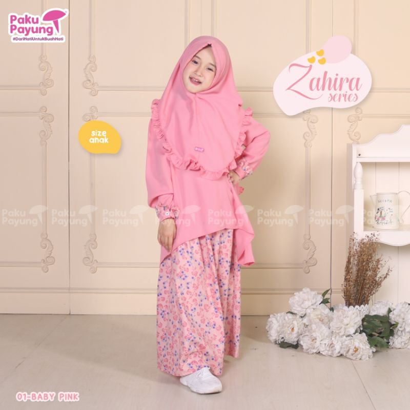 NAMA PRODUK: ZAHIRA SERIES1 SET PRODUK: Tunik + Rok + KhimarBAHAN TUNIK: Wolly CrepeBAHAN ROK: Katun JepangBAHAN KERUDUNG: WOLLY CREPEDETAIL SIZE, UMUR, DAN HARGA GAMIS ANAK:• M | PB 40 | LD 72 | 4Y-5Y | Rp147.000• L | PB 45 | LD 74 | 6Y-7Y | Rp154.000• XL | PB 55 | LD 78 | 7Y-8Y | Rp167.000DETAIL SIZE, UMUR, DAN HARGA GAMIS REMAJA:• 1 | PB 60 | LD 88 | 8Y-9Y | Rp184.000• 2 | PB 65 | LD 92 | 10Y-11Y | Rp194.000• 3 | PB 72 | LD 96 | 12Y-13Y | Rp204.000PILIHAN WARNA: 01-BABY PINK, 02- TOSCA, 03-PURPLE, 04-BABY BLUE, 05-R
