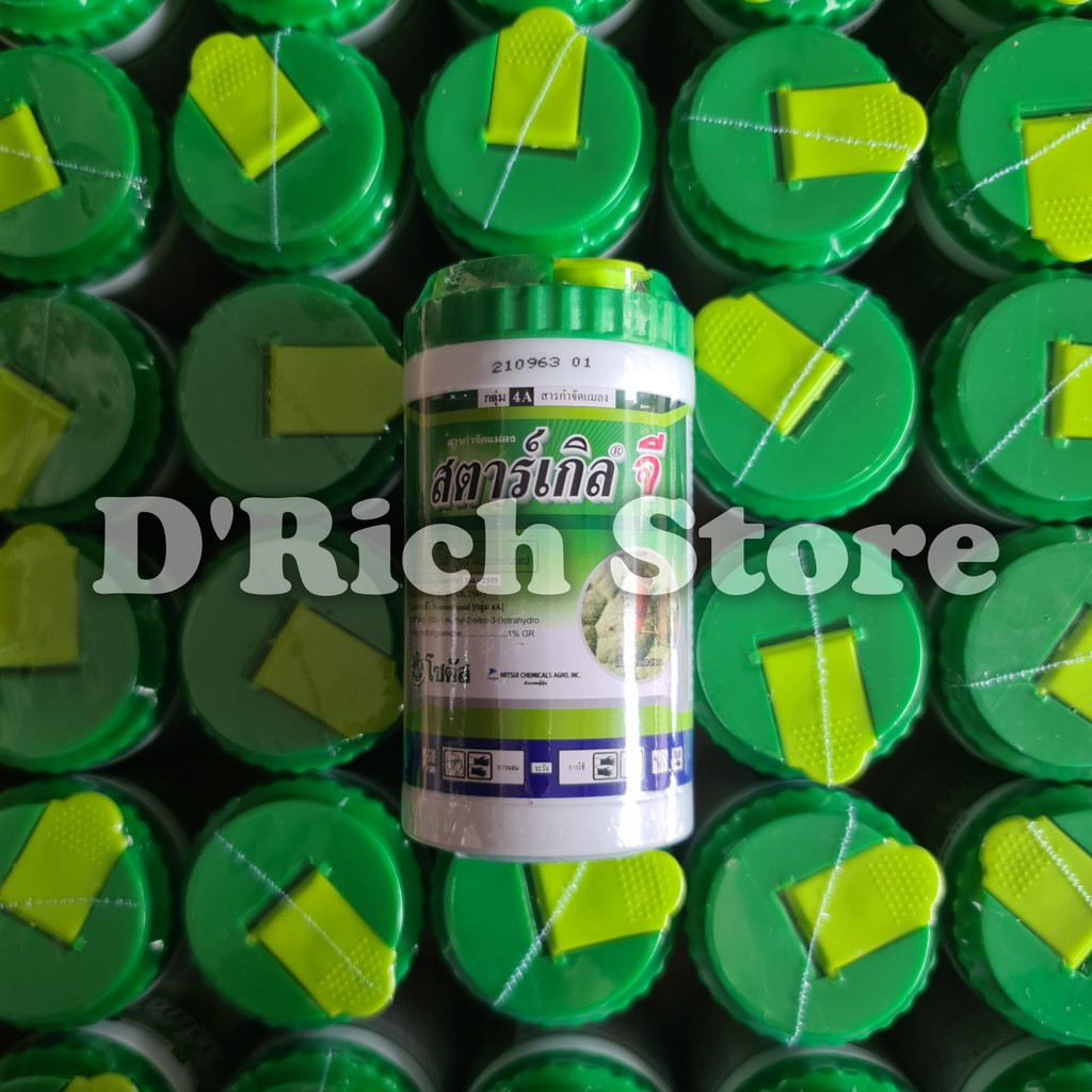 SELAMA IKLAN ADA BARANG SELALU READY YA...Langsung aja di order.... di D'Rich Store Noted : Kemasan "ASLI" Sesuai iklan, Bukan RepackingDeskripsi Starkle G Thailand - 250 gram- Starkle G adalah obat pembasmi hama yang di produksi oleh Mitsui Chemicals - Jepang- Starkle G efisien dalam mengendalikan serangga selama 30-45 hari. Ini dapat melindungi tanaman dari serangga seperti kutu putih di akar, rayap, kumbang tanah, semut dalam media tanam, dll.- Starkle G dengan warna merah muda bentuk granule ( pasir ) tanpa bau menyengat- Starkle G cocok untuk tanaman berbunga dan tanaman hias seperti kaktus, euphorbia, adenium, aglonema dll- Starkle G dapat diaplikasikan bersama dengan biji pada saat penyemaian.- Cara pakai sangatlah mudah bisa di mix dengan media sebelum menanam atau bisa di tabur di atas permukaan media.- Pemakaian sangah irit, cukup satu sendok takar atau sekitar 2 gram untuk satu pot tanaman, sendok di sertakan dalam botol kemasanHAPPY GARD