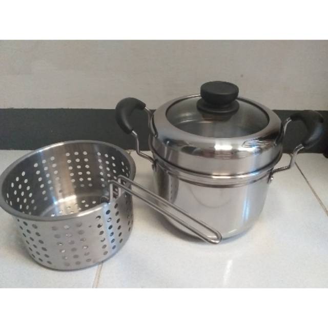 Panci Multifungsi STAINLESS Diameter 22 ~ Golden Flying Fish1 sheet dapat 3 pcs terdiri dari ;Panci MerebusSaringan MengukusDeep