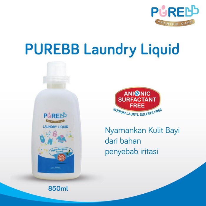 Pure BB Laundry Liquid Adalah cairan pembersih pakaian bayi dengan formulasi bebas detergen >)Pure BB Laundry Liquid adalah cairan pembersih pakaian bayi dengan formulasi bebas detergen (Sodium Lauryl Sulphate Free). Membersihkan dan mengan kandungan bahan mild. Dilengkapi dengan ekstrak Aloe Vera untuk melembutkan. Aman untuk kulit bayi yang sensitif. Dilengkapi dengan Anti Bacterial dan Anti Fungi.>)Sabun pencuci baju bayi bentuk cair lebih mudah dibilas dibandingkan dengan yang bentuk bubuk Sehingga resiko penyebab iritasi pada kulit bayi lebih rendah dengan menggunakan sabun cair.>)Apa Benefit Pure Baby Liquid Cleanser?Tanpa bahan Detergen SLS:Sekalipun merupakan bahan pencuci pakaian (detergen) , Purebaby Laundry Liquid tidakmengandung bahan Detergen SLS (sodium laurly sulfate) dengan formulasi MILD.>)Hypoallergenic,ph 5.5, Anti Bakterial dan Fungi:Purebaby Laundry Liquid teruji Hypoallergenic karena menggunakan bahan mild dan Tanpa bahan Detergen SLS juga Anti bacterial dan Fungi dengan Aloe